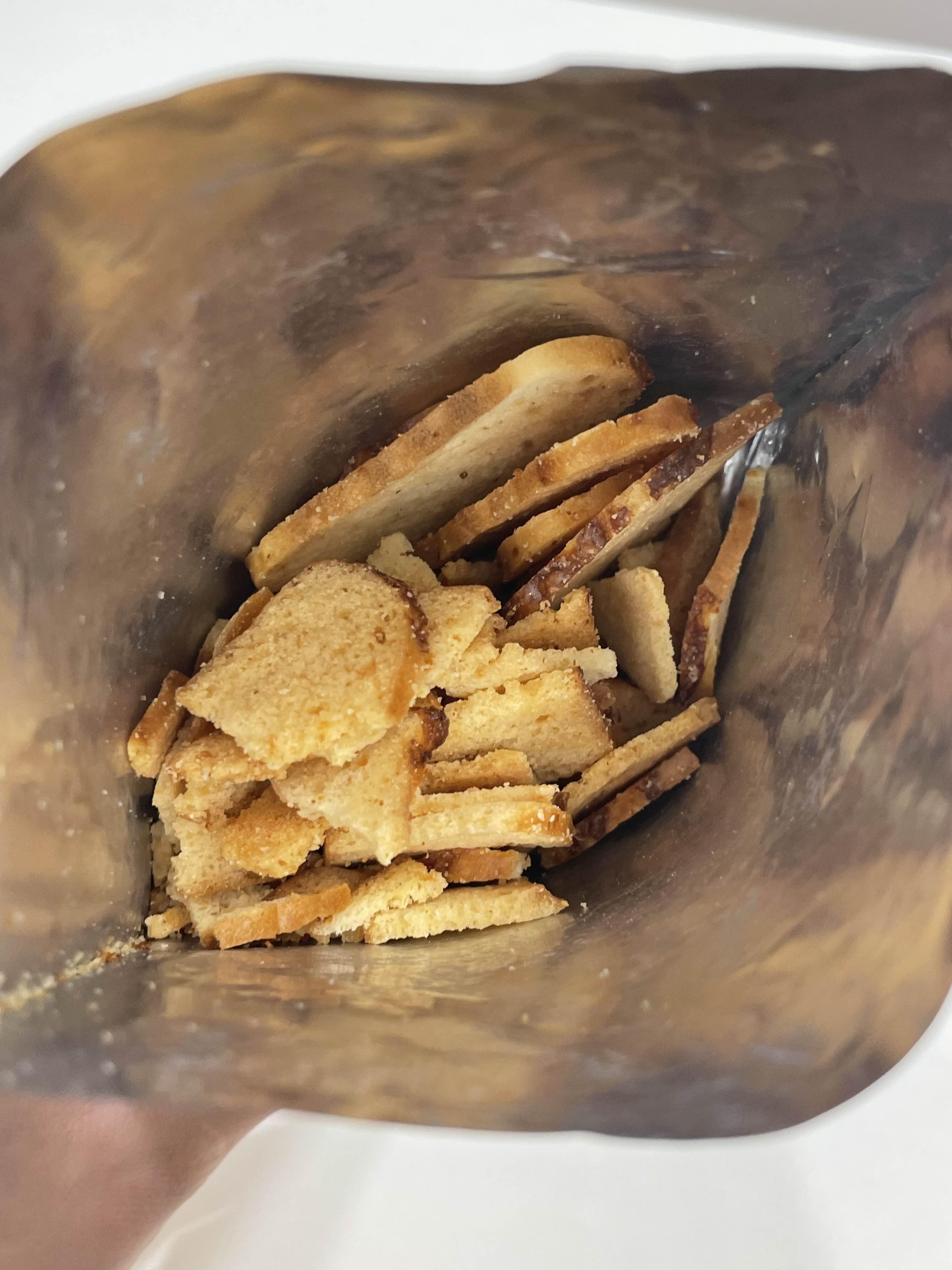 스타벅스 더블 치즈 베이글칩은 열자마자 달달한 치즈향이 나더라고요. 파마산 치즈, 모짜렐라 치즈를 넣어 구운 베이글에 꿀을 더해 두 번 구워 만들었다고 합니다. 왜 달달한 냄새가 나는가 했더니 꿀 때문이었어요!