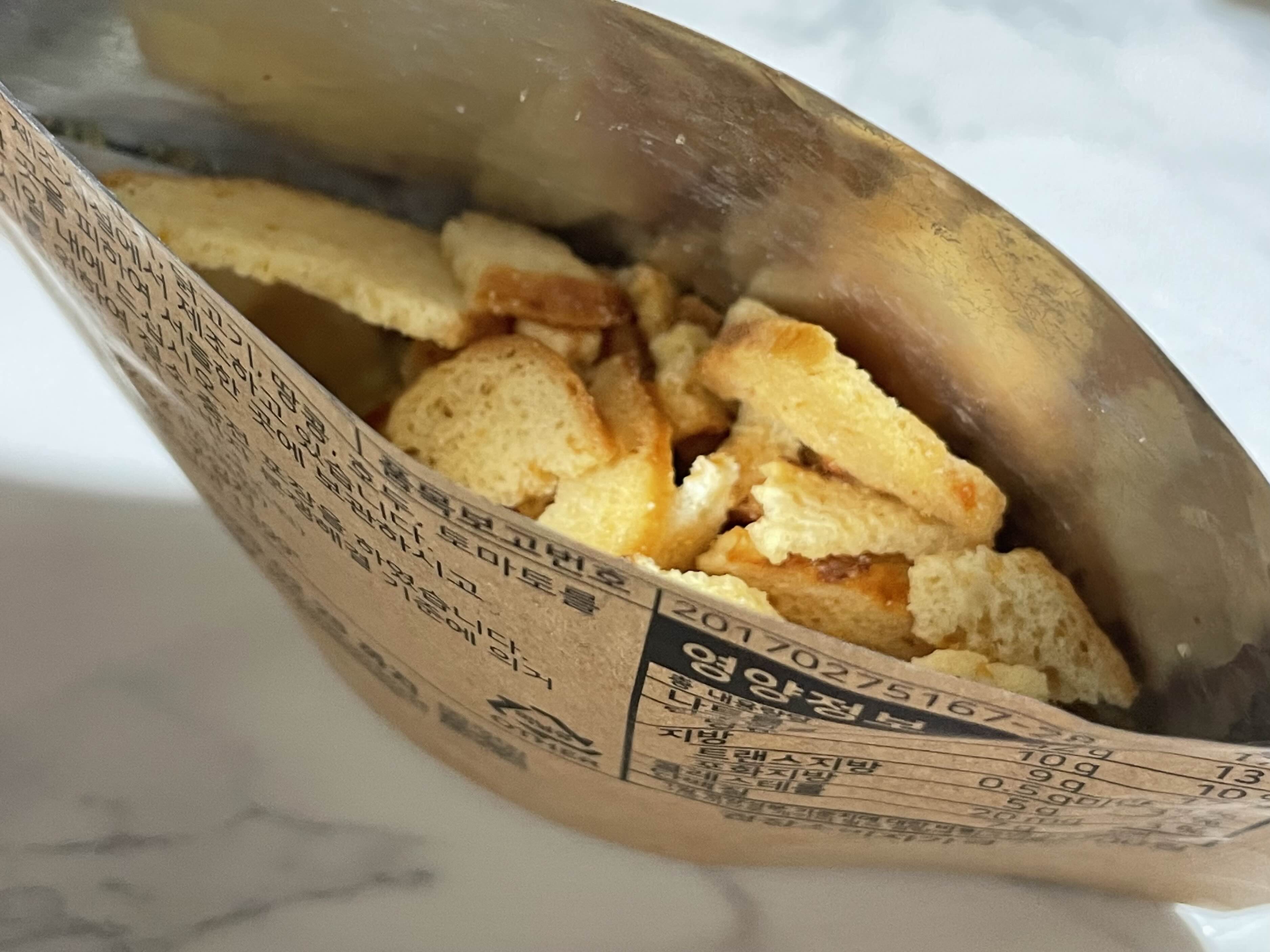 스벅 베이글칩 식감은 두 번 구워서 엄청 바삭해요. 단단하다고 해야 더 맞는 듯? 오도독 오도독 씹어먹을 정도의 식감이에요. 단 맛이 적당히 나고 치즈향이 잘 느껴져서 좋았어요. 치즈 간식 잘 먹는 아이들도 좋아할 것 같은 맛이에요. 딱딱한 음식 잘 못 먹는 아이들에게는 비추천입니다..!
