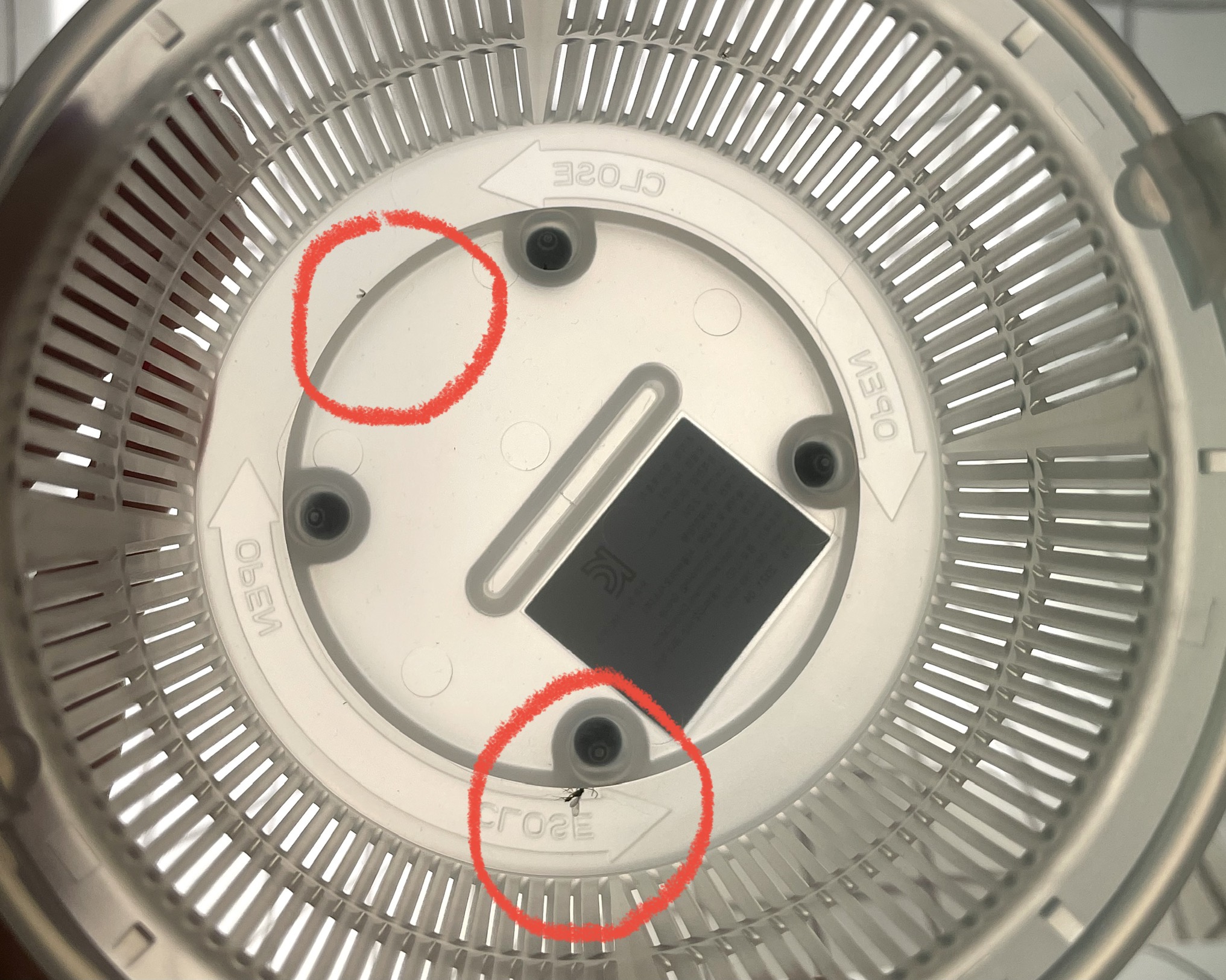 본체 아래 포집통과 탈출방지팬이 합체되어 있어요. 포집통 분리하는 방법은 포집통 바닥의 손잡이를 잡고 시계 반대 방향으로 돌리면 쉽게 분리할 수 있습니다. 반대로 포집통 바닥의 손잡이를 잡고 시계방향으로 돌리면 체결됩니다.
