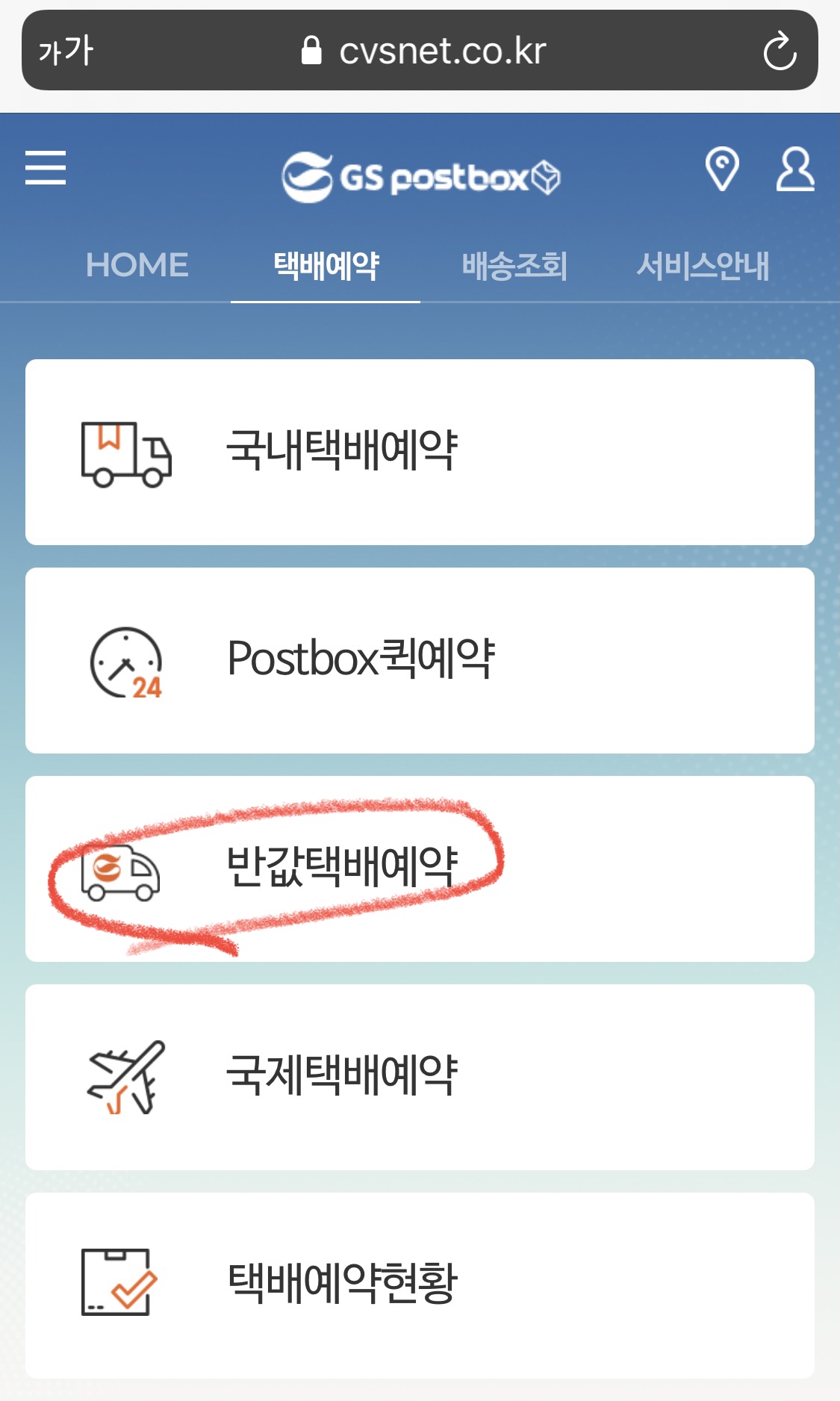 (2) 택배예약 목록 중 반값택배예약을 클릭합니다.