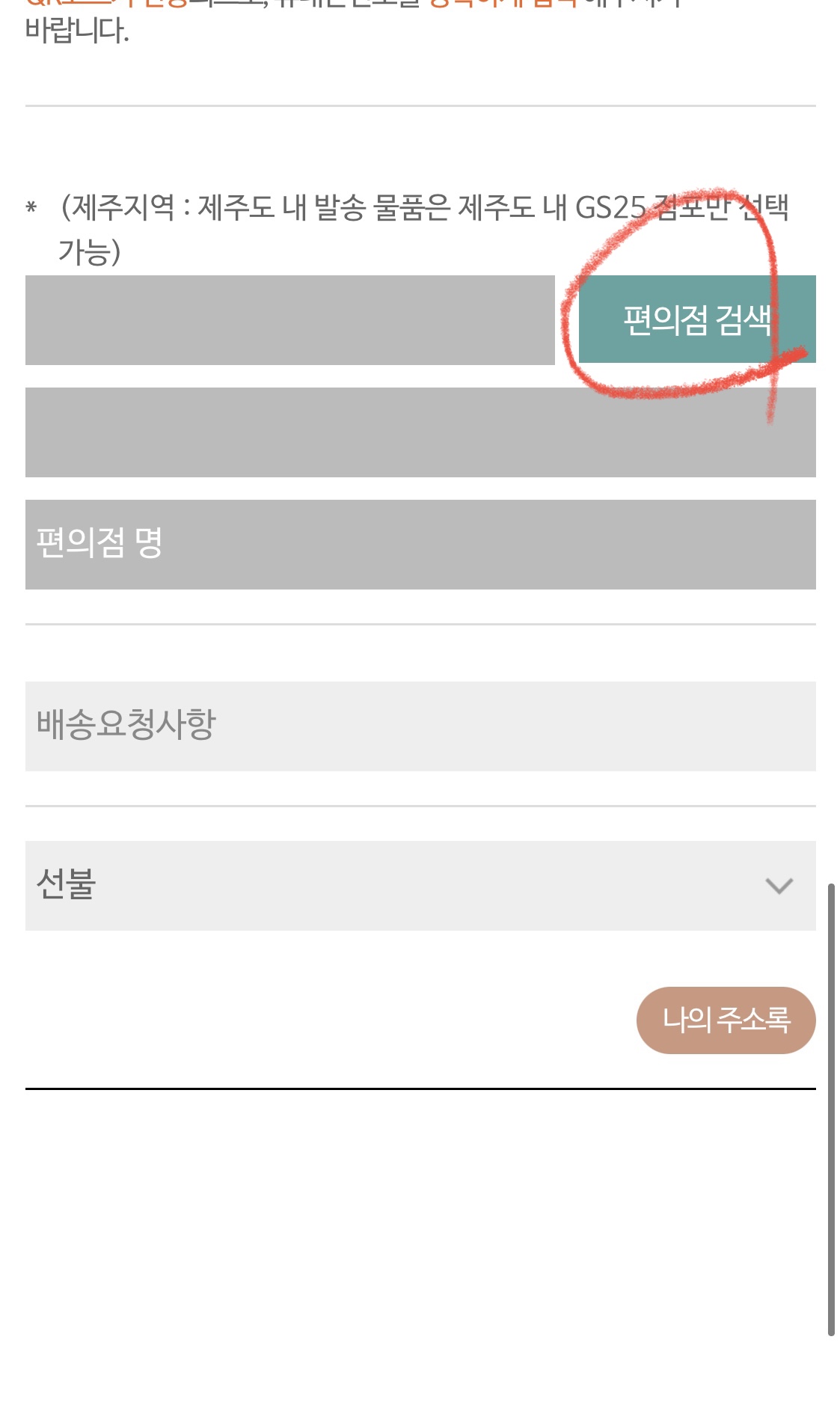 (7) 편의점 검색을 눌러 지점명을 검색해주세요. 미리 구매자에게 수령할 편의점 지점을 정확하게 물어보는 것이 좋습니다.
